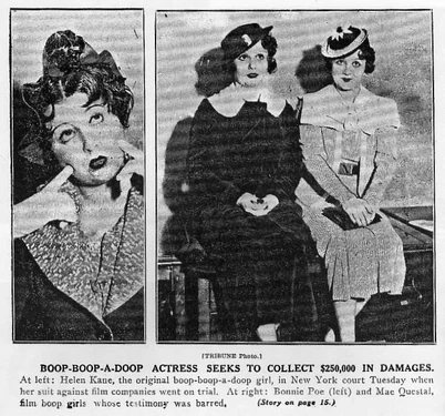 Bonnie Poe served as defense in the Helen Kane lawsuit against Betty Boop. It was stated that Margie Hines, Mae Questel and Poe were as much "Boop-Oop-a-Doop" girls as Kane. The latter however avered that they got their start "Booping" through contests which were sponsored by Helen Kane.
